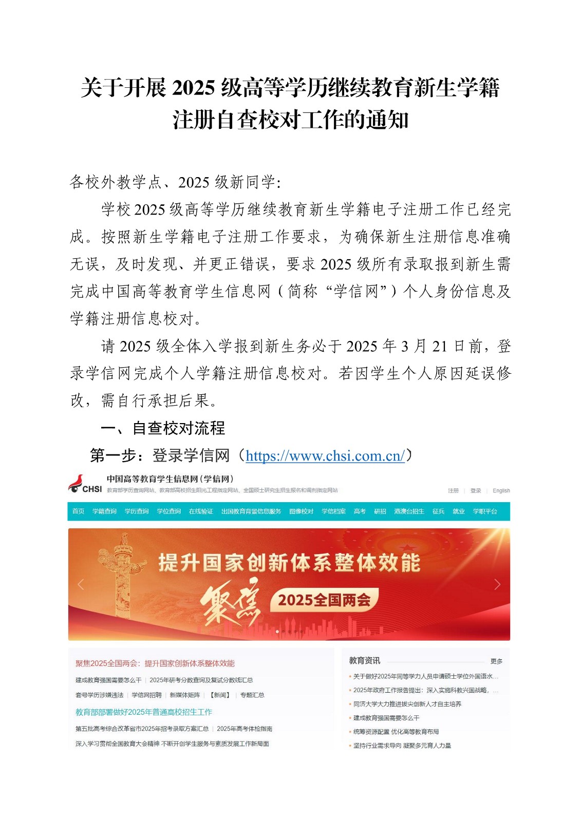关于开展2025级高等学历继续教育新生学籍注册自查校对工作的通知